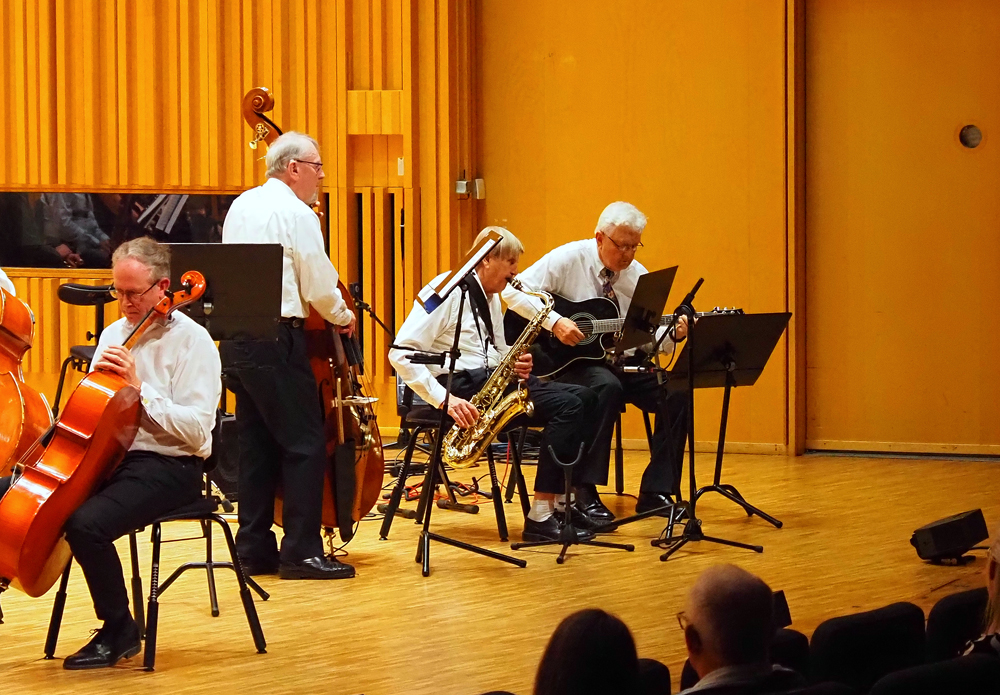I varmt och vackert sensommarväder genomfördes lördagen den 20 september 2025 Västerås Kulturnatt 2025, årets största kulturevenemang i staden. Till de platser där kultur kunde upplevas hörde Foajén, Lilla Salen och Stora Salen i det förnämliga Västerås Konserthus. I Stora Salen bjöd Arosorkestern från kl 21:15 på en välbesökt sommarnattskonsert. Konserten, med klenoder från då- till nutid, leddes av Helen Grönberg med Christer Norrman som konsertmästare. Den färgrika musikaliska buketten hade inslag av bland andra August Söderman, Armas Järnefelt och Joseph Haydn. Johann Strauss den yngres födelse för 200 år sedan i år uppmärksammades med musik från operetten En natt i Venedig. I ett avsnitt bjöd Arosorkesterns Swingband på jazzstandards.