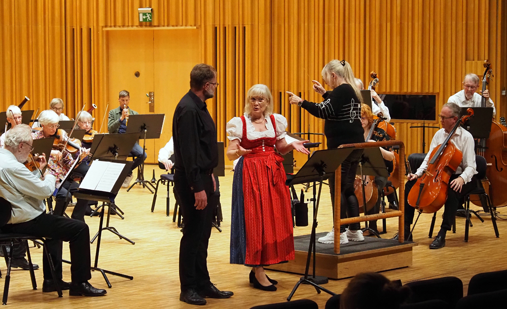 Sångsolister i konserten var Eva Magnusson, sopran och Markus Norrman, baryton som med duetter från filmen Två hjärtan i valstakt och från operetten Värdshuset Vita Hästen hedrade den för 50 år sedan bortgångne kompositören och dirigenten Robert Stolz. Välkommen att klicka på bilderna här ovan för att se dem i större format.