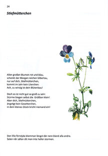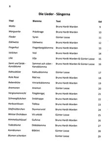Till konsertprogrammet hör en 32-sidig programbok som innehåller samtliga blommor målade i akvarell av Eva Magnusson samt fakta om sångcykeln och dess upphovspersoner och texterna till samtliga sånger med korta kommentarer på svenska. Välkommen att klicka på bilderna här nedan för att i större format se exempel på några sidor i programboken. Boken kostar 50 SEK inkl. moms alternativt ingår i biljettpriset till konserter. (2024-07-02 Rev 2024-10-06)