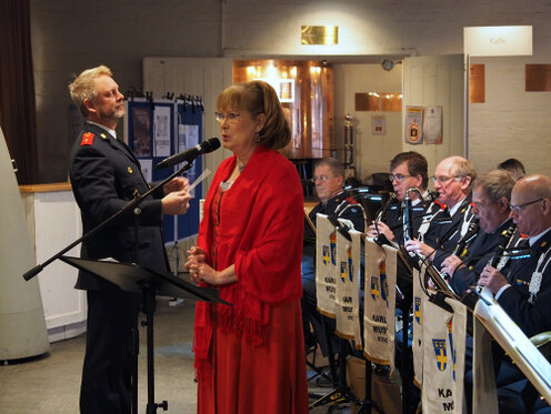 I värmande gemenskap med en stor och tacksam publik på Ersta diakonis äldreboende Susannahemmet i Segeltorp bjöd Eva Magnusson och Roger Janson med ackompanjemang på ackordeon av Esbjörn Ferm fredagen den 15 december 2023 på ett stort knippe av jultidens vackraste och mest älskade sånger och melodier. Hjälpsam och charmerande värd var Rose-Marie Jansson.